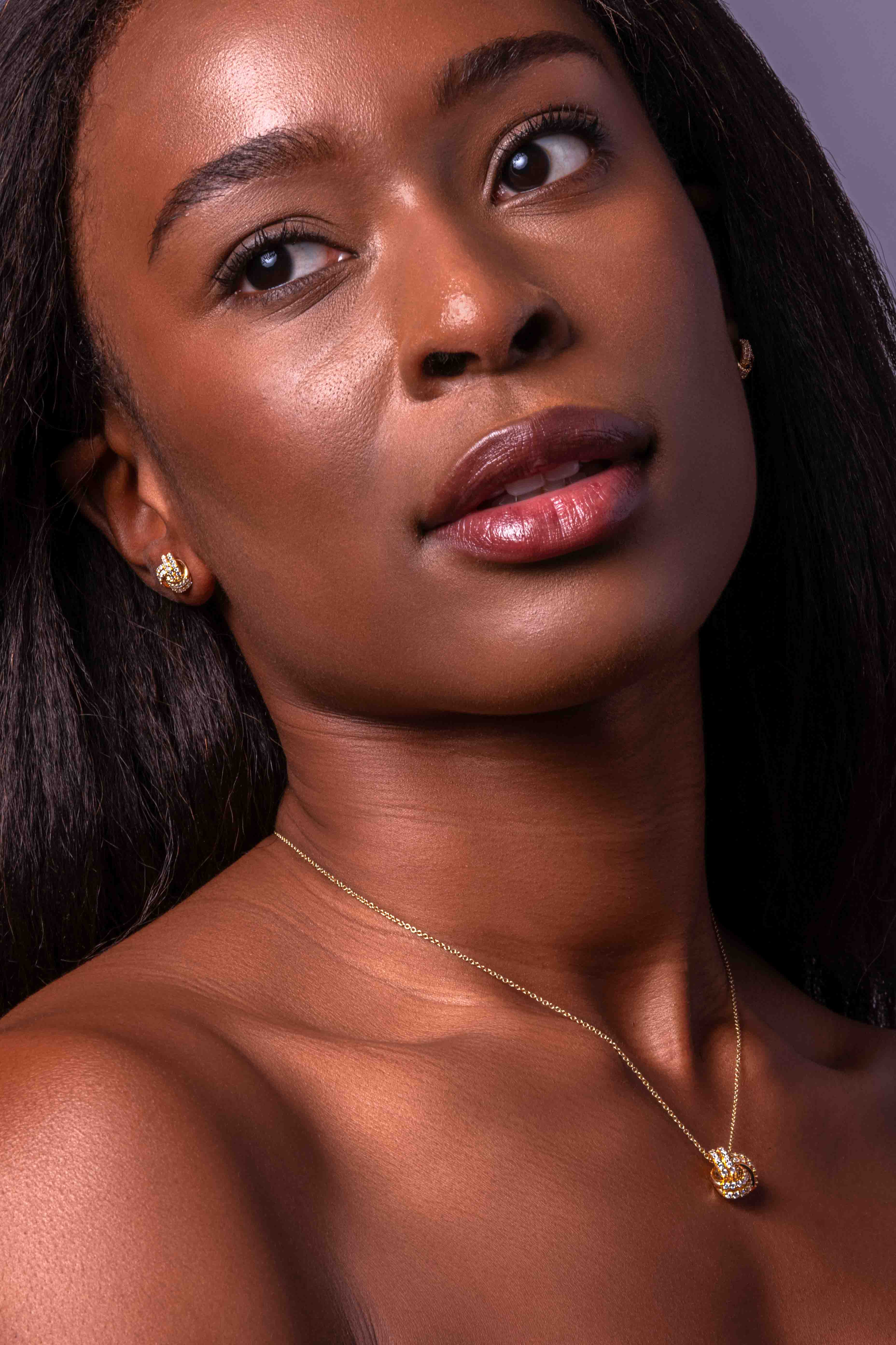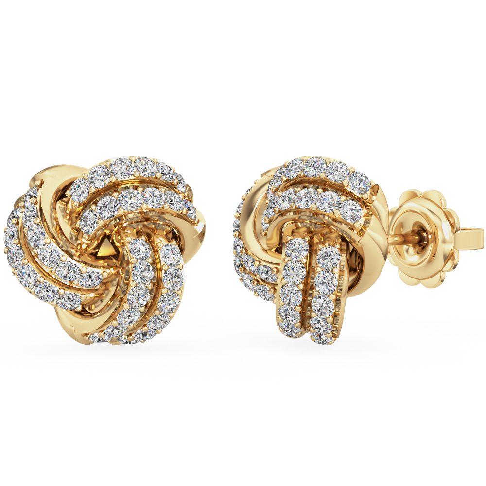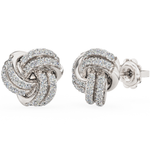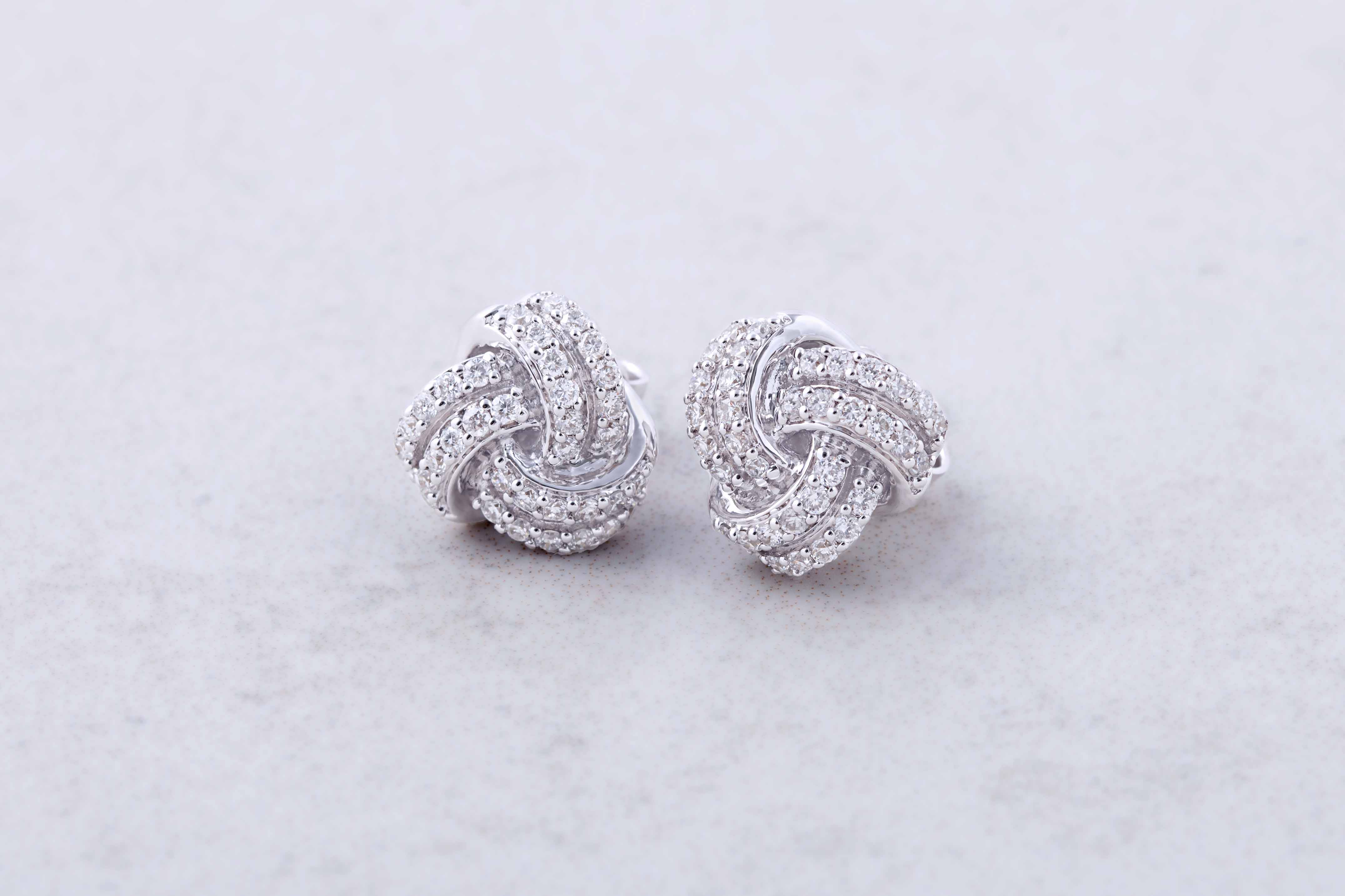 Our Classira knot style stud earrings are set with a total of seventy two glistening round stones in a delicate claw setting and pair beautifully with the Kamala pendant. These earrings can be set with either cubic zirconias or lab grown diamonds and are crafted using 100% recycled 9ct gold.